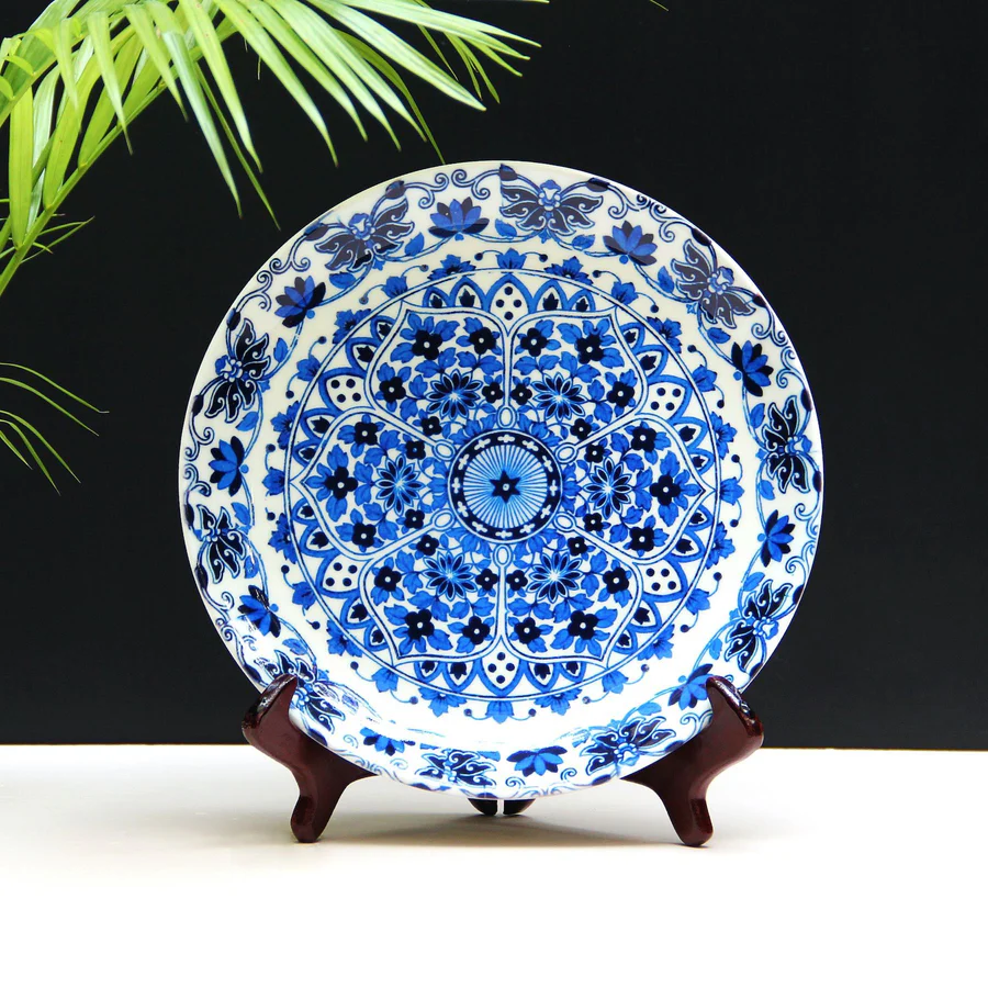 • Geometric pattern: Bring a dash of classical appeal to any wall decor ensemble in your home with this blue & white Persian-inspired wall plate. A unique wall accent piece for your living room or bedroom, it will look stunning on its own or mixed with several other designs.